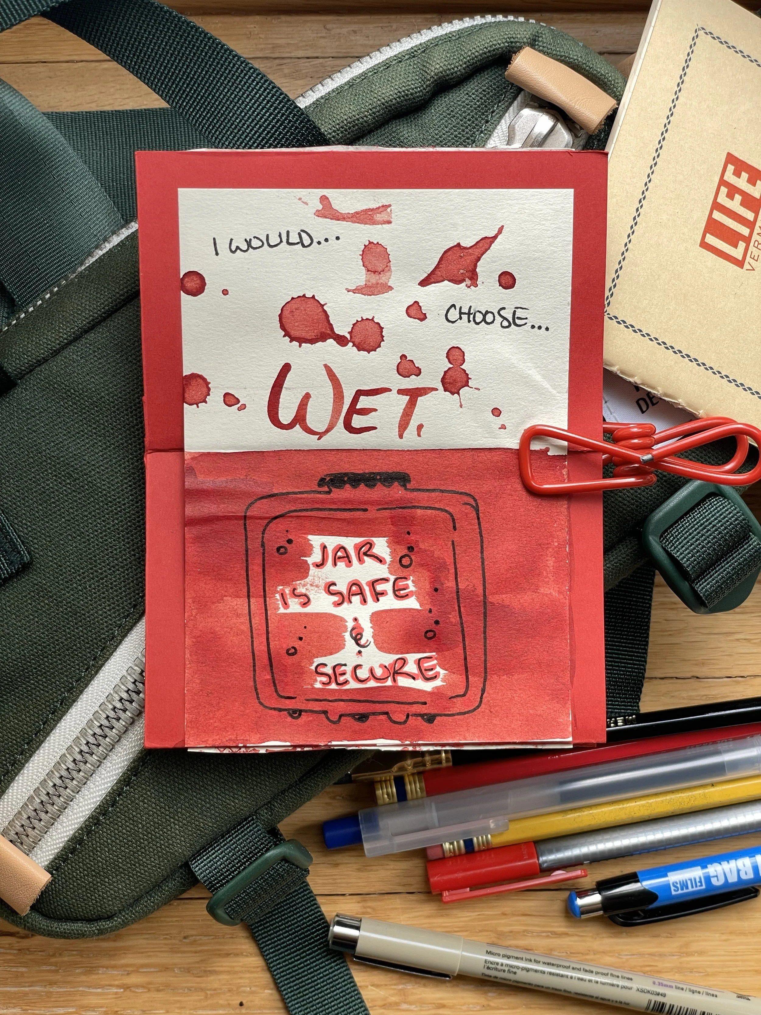 would you be a wet or dry preserved specimen if you had to choose? accordian style zine on card stock with watercolour and ink (2025)